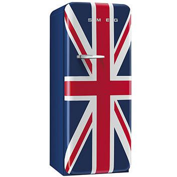 22 cubic foot capacity refrigerator is designed with a retro style from the 1950s, and features a Union Jack that will look great in any setting